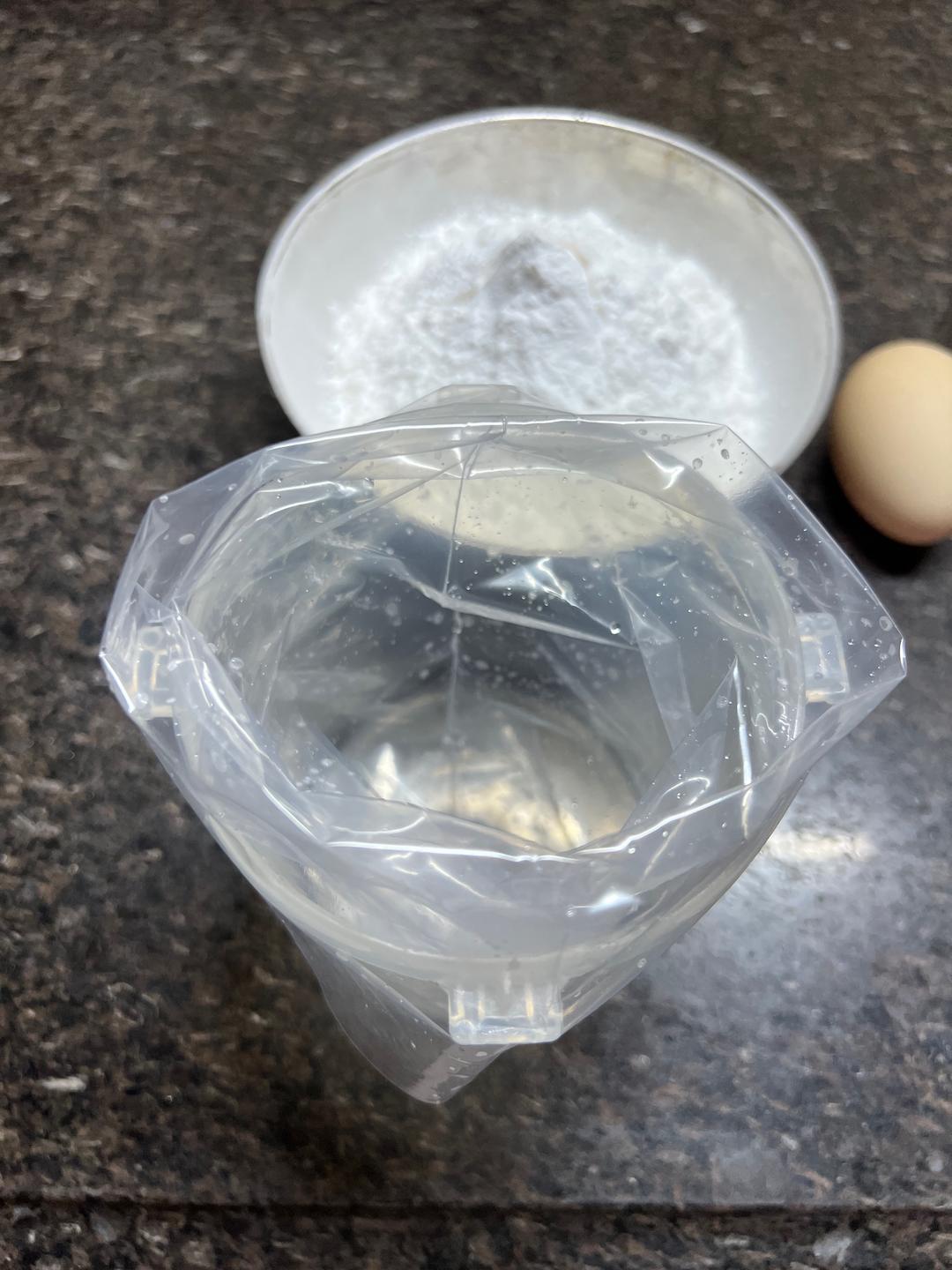 准备好裱花袋,把裱花袋套在杯子上,到时容易把浆装进袋子里