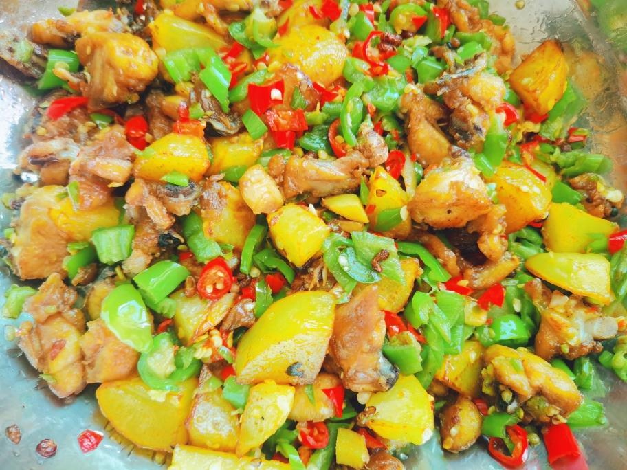 嫰豆花是买的。辣子鸡🐔里面挑土豆、少许青红椒用来盖饭也是超绝的(😋一口下去味蕾打开新世界,嫰豆花的滑嫩,米饭混合土豆和豆花的豆香味,青红椒调味,真的绝)。