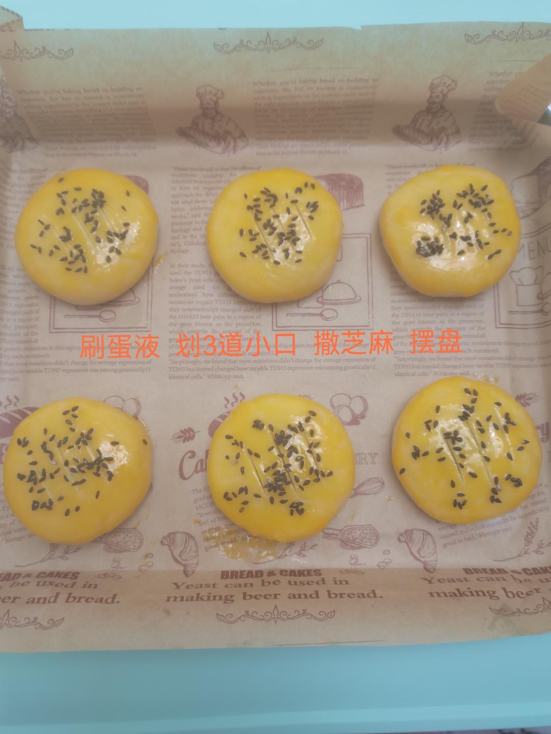 刷蛋液,划3道口,撒上芝麻摆盘。