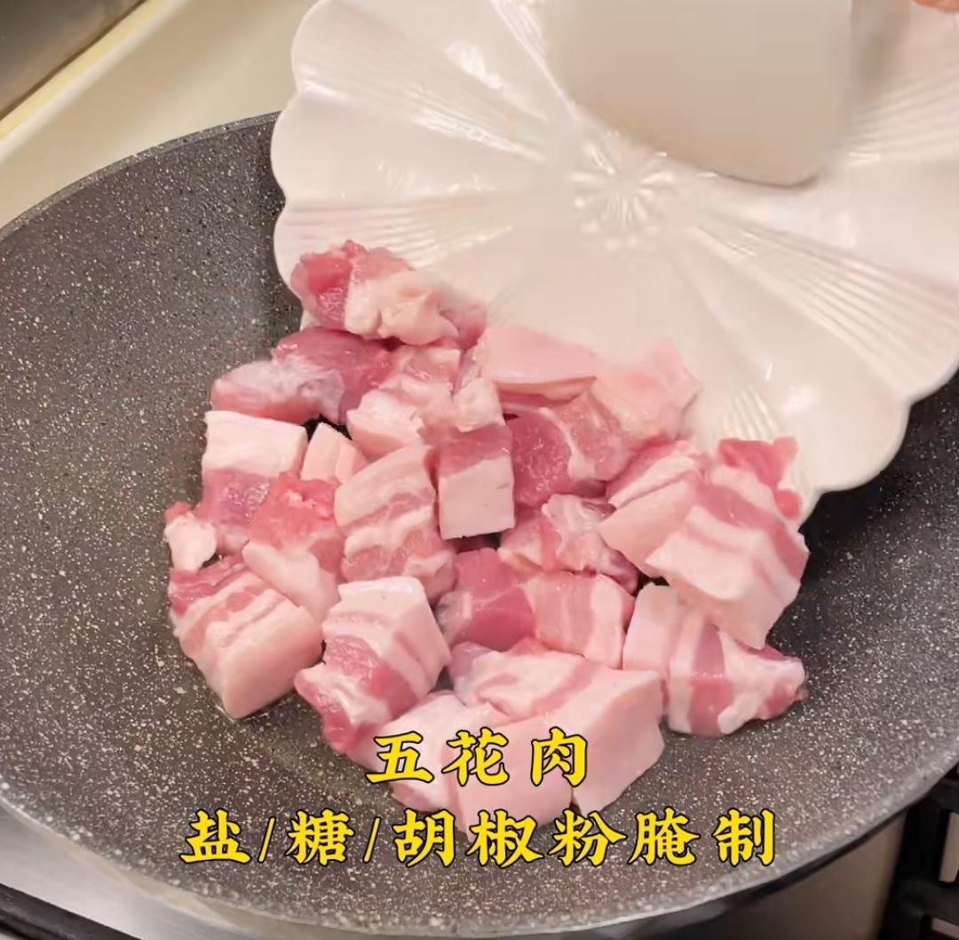 五花肉用盐糖胡椒粉腌制!