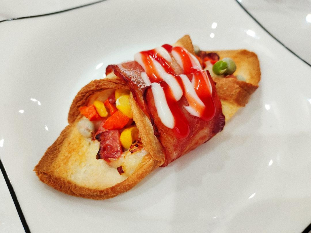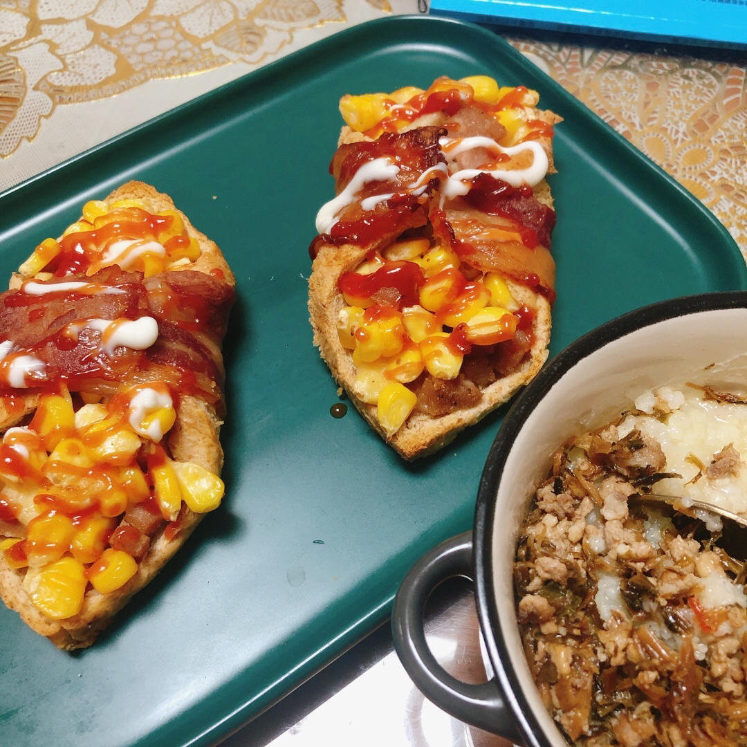 味道超赞,吐司烤的脆脆的,蜂蜜芥末酱配玉米粒味道绝了