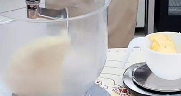 先低速搅拌成团。转快速。然后称出软化黄油40克