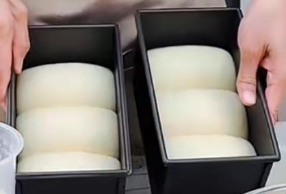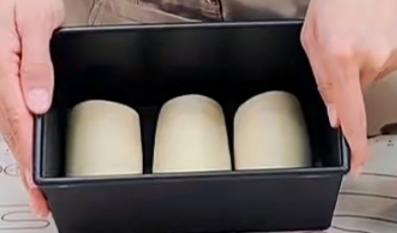这款土司发酵到六分满。发酵高点到磨具距离4公分左右。去烤