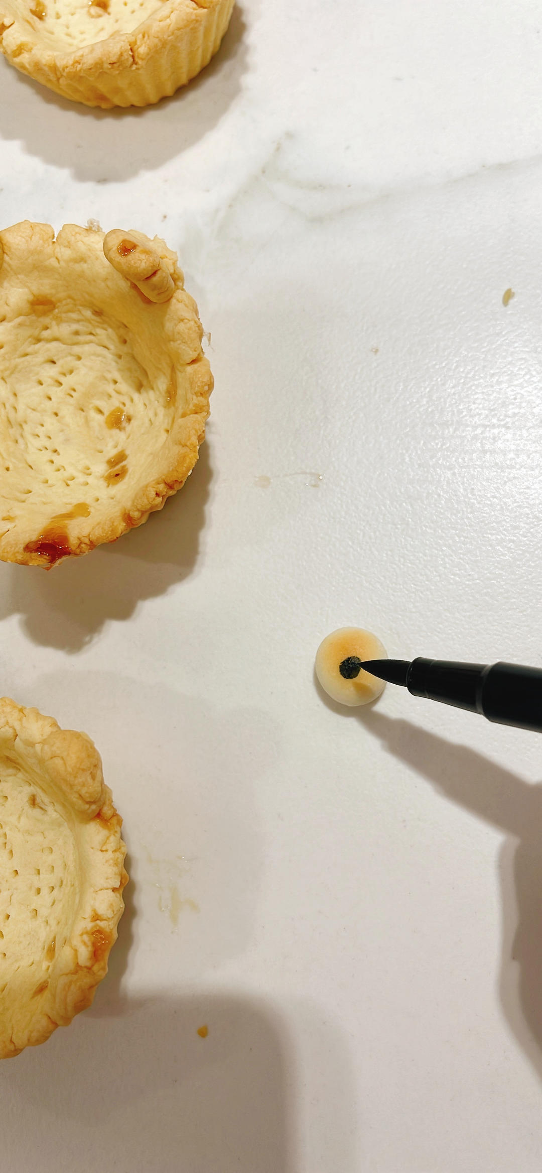 用食用色素笔画上小熊的鼻子、嘴巴。