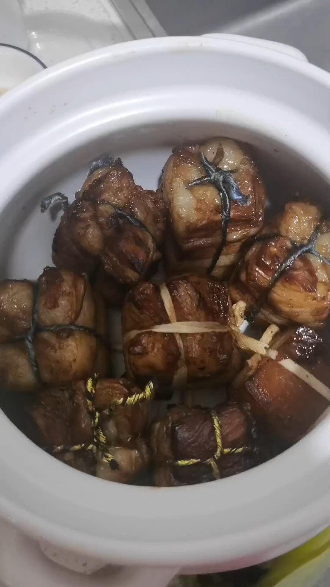 每块肉都要绑起来,防止煮的时候碎了