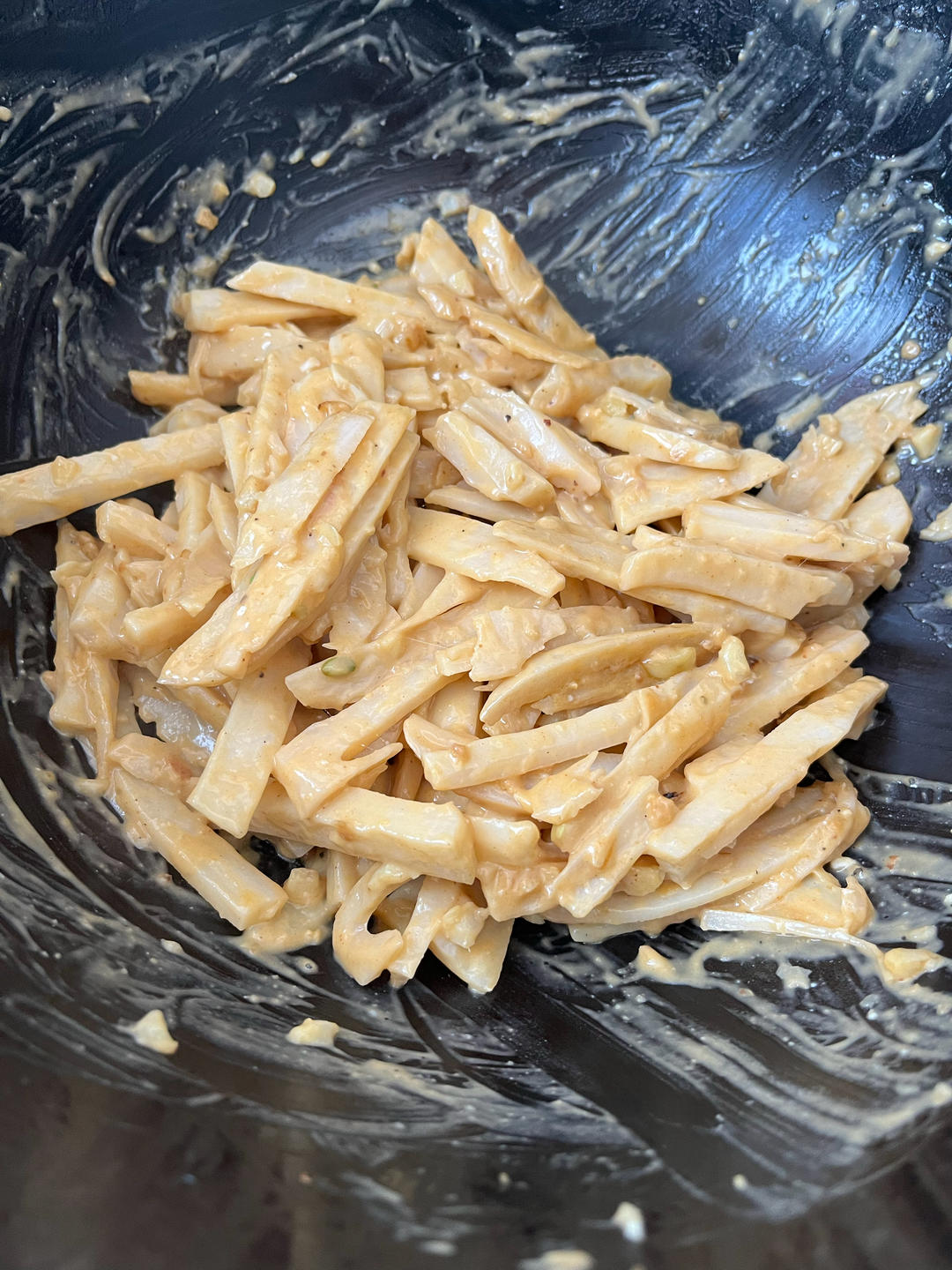 四分之一藕再从中间劈开,就可以开始切丝或切条儿,顺着空儿的方向切,看不出来藕,吃起来傻傻分不清楚是啥的感觉,呵呵🤭