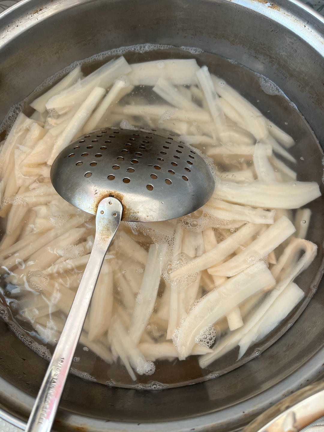 投入热水烫过的藕丝,有些粗的藕丝,好吧,藕条儿!