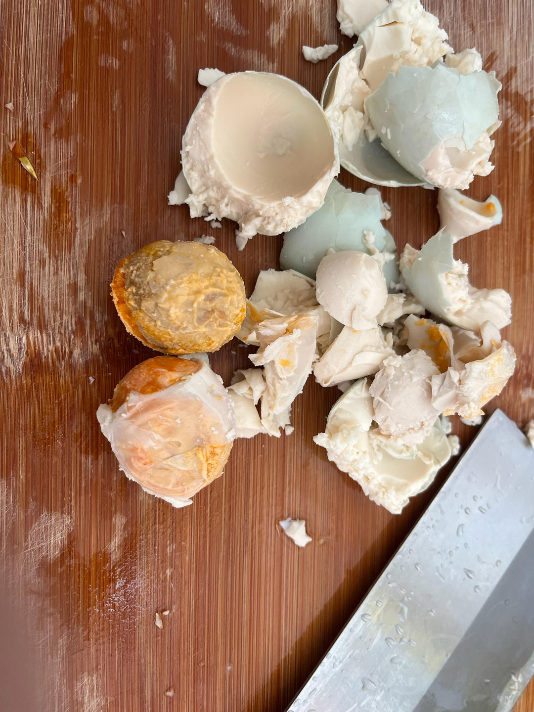宰杀2个咸鸭蛋,取黄,其他部分扔掉,不是我浪费,因为忒咸了,果断扔掉,起码黄是正经吃掉了,没有集体浪费。