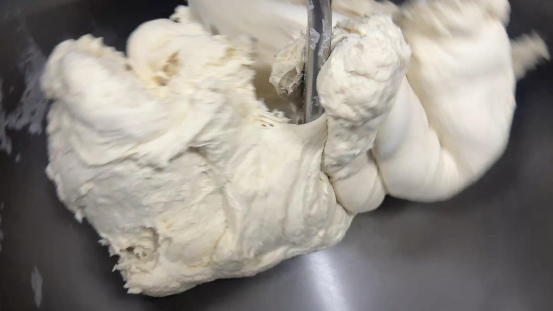 检查面筋,扯一块能轻抻出厚膜(七八成筋)即可