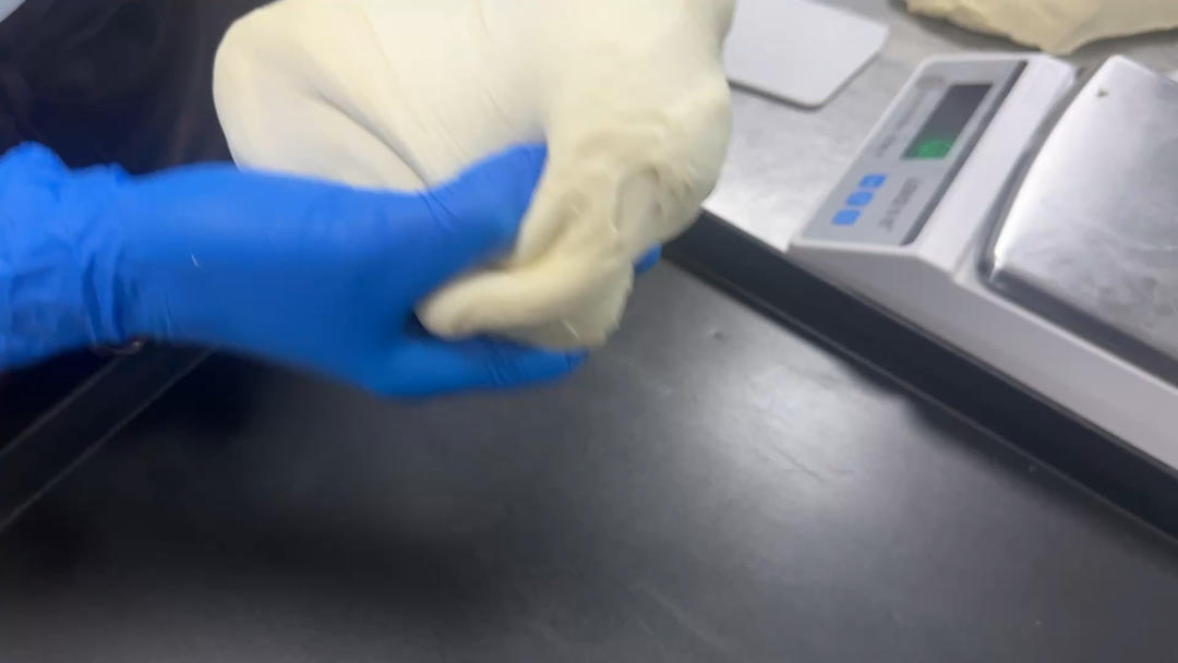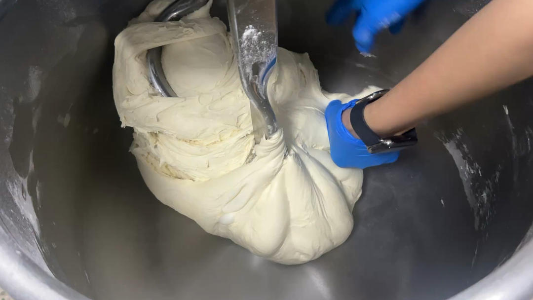 检查面筋,面团能抻出手套膜即可