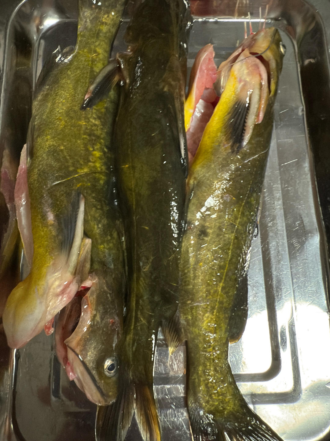 汪刺鱼,内脏清理干净。洗的时候当心刺扎手。 用厨房纸吸干,包括放鱼的盘子也擦干,或者直接换一个盘子。备用。 同时,去烧壶开水备用。