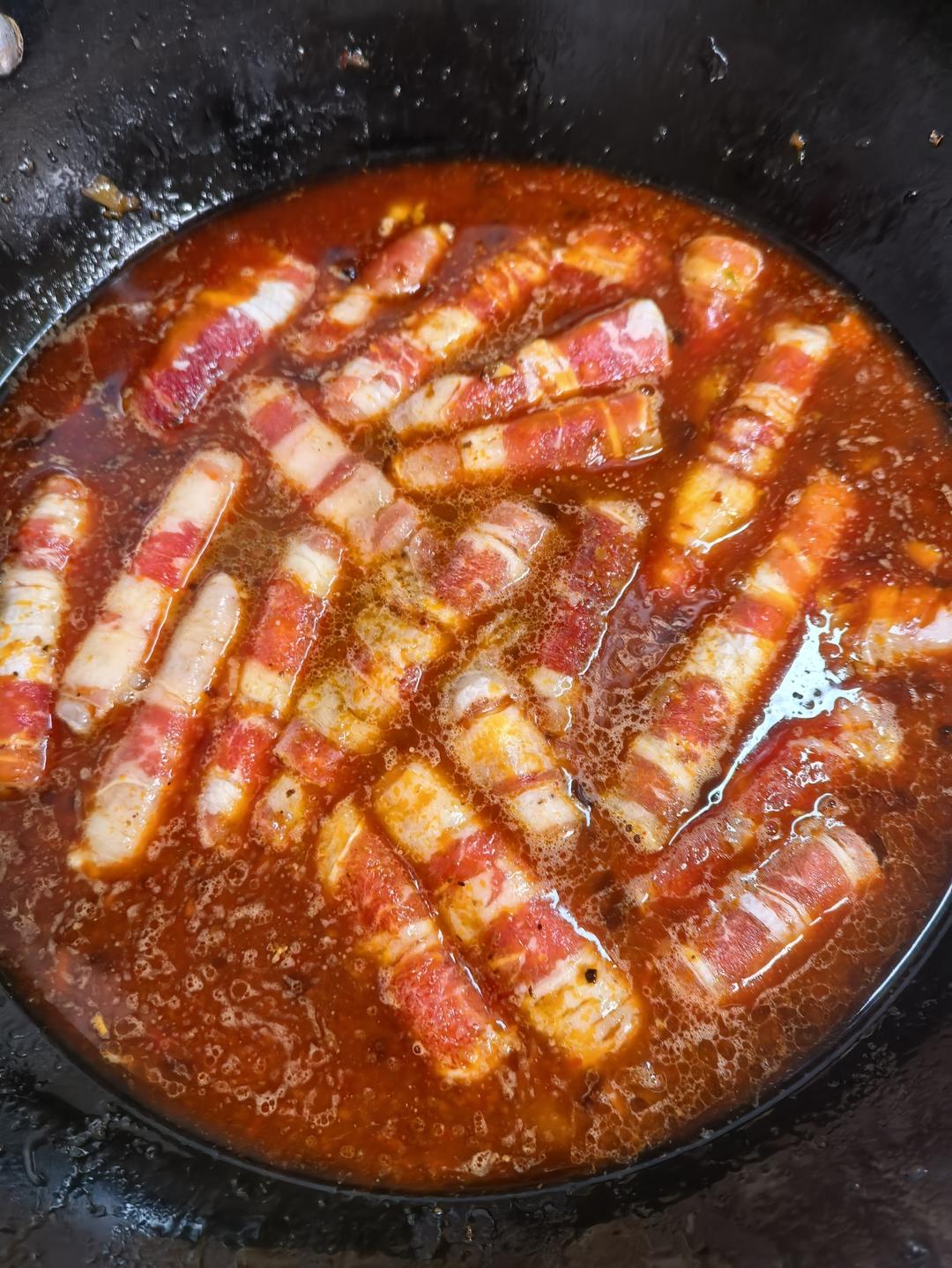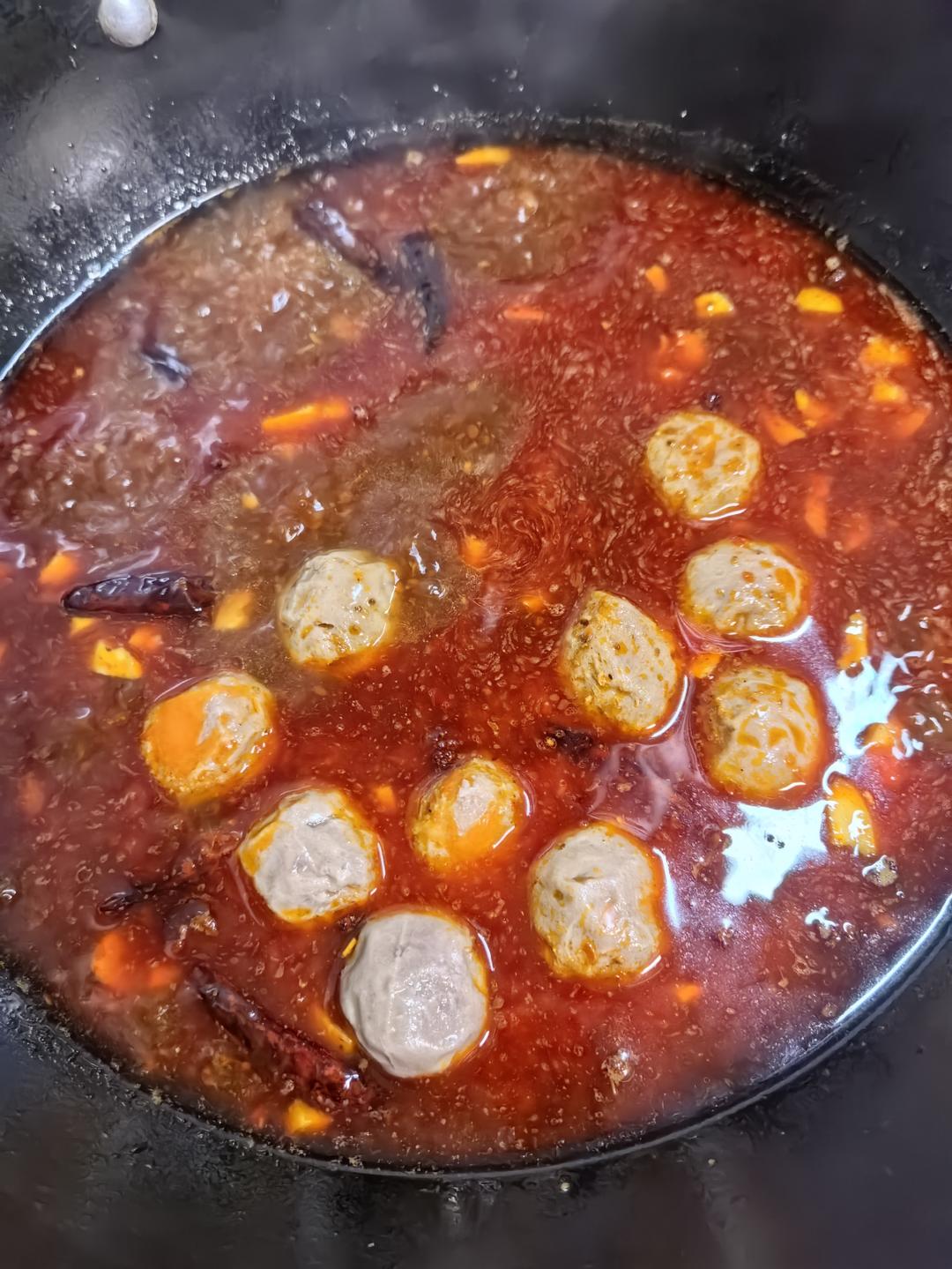 先倒入牛肉丸木耳(煮得得久的菜可以先放),然后下豆腐皮,虾。因为水不多,就捞出煮好的食材。