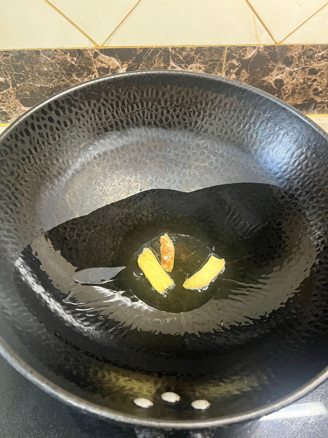热锅,放油,放两三片生姜