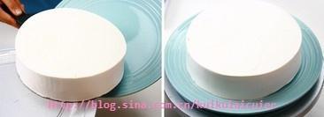 抹平后用刀从蛋糕底部插入,将蛋糕移入平盘或者蛋糕盒配的纸托上,再进行下面的装饰
