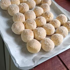 70g黄油 牛奶20g 奶粉40g 椰蓉100g 两个蛋黄 味道很棒,和外面卖的没差别。