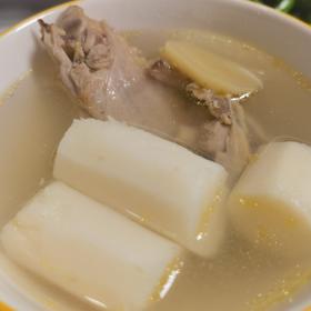 味道不错,把家里剩下的白萝卜和山药一起炖。炖了一个半小时,中间还加了一次水。山药基本烂了,萝卜还行。撇了两次沫,最后的汤头非常清,鸭子基本也酥了,完全没有腥味。不过,把整个鸭子切块折腾了半个小时。。。如果没有切鸭子的过程,这道汤会愉快很多。#晚餐•2022年5月7日#