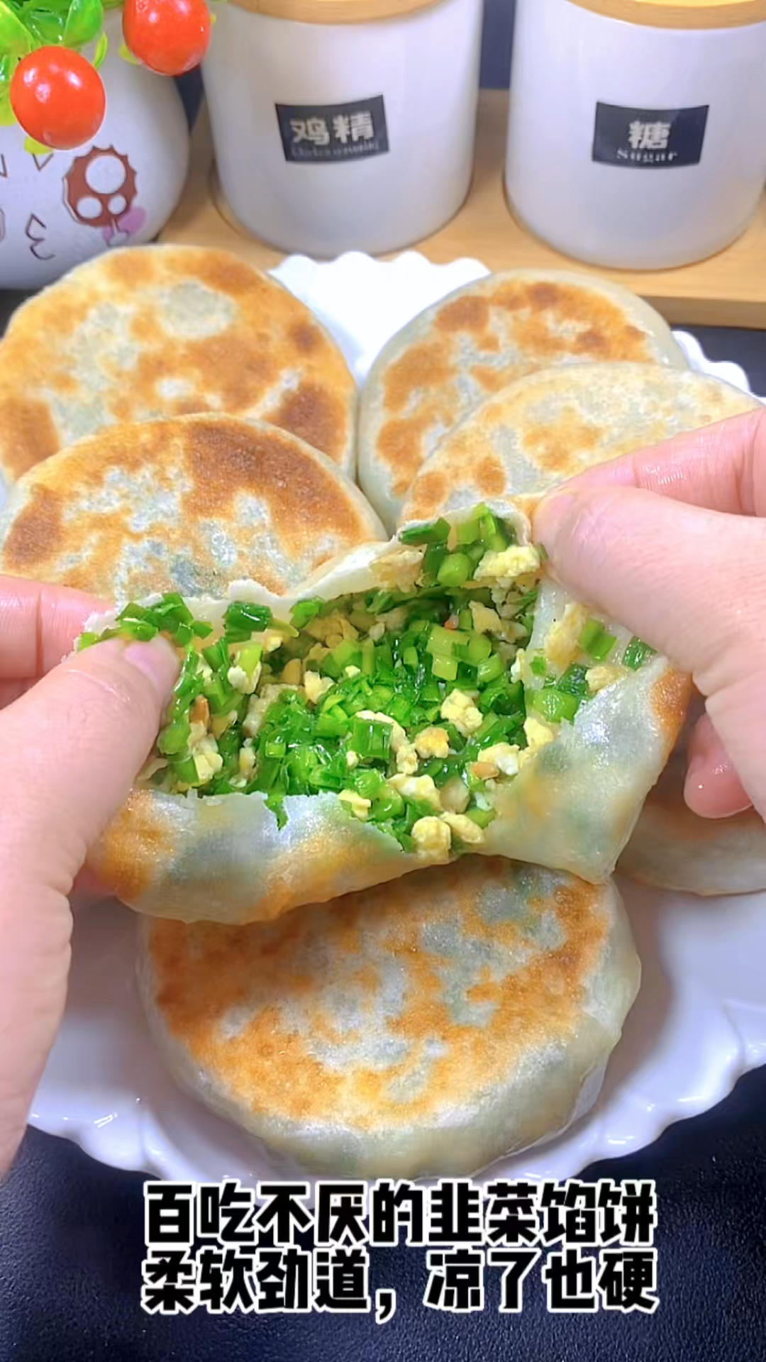 韭菜馅饼,皮薄馅大,凉了也不硬!