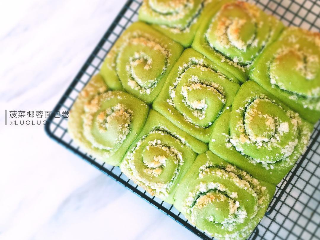 菠菜椰蓉面包卷-花样面包