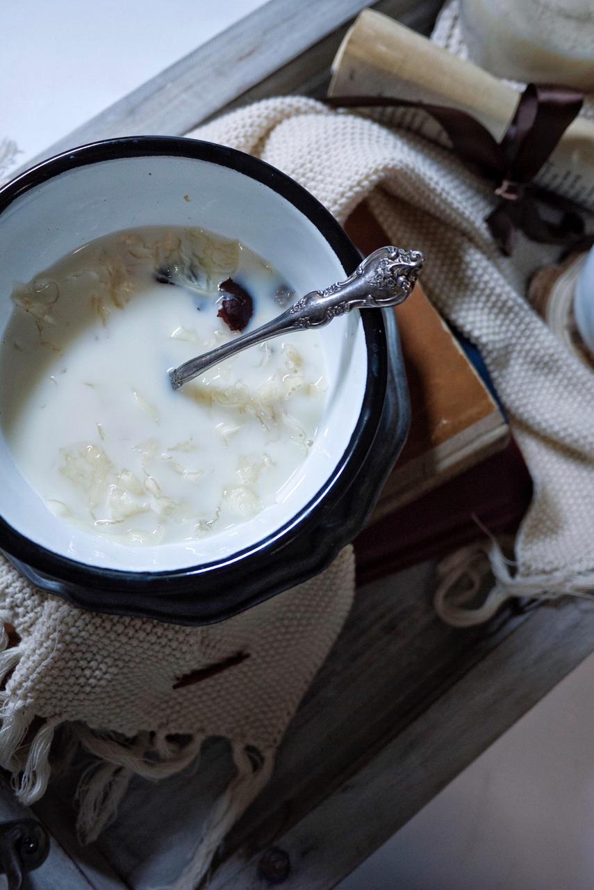 红枣银耳炖醪糟牛奶羹【健康饮品】