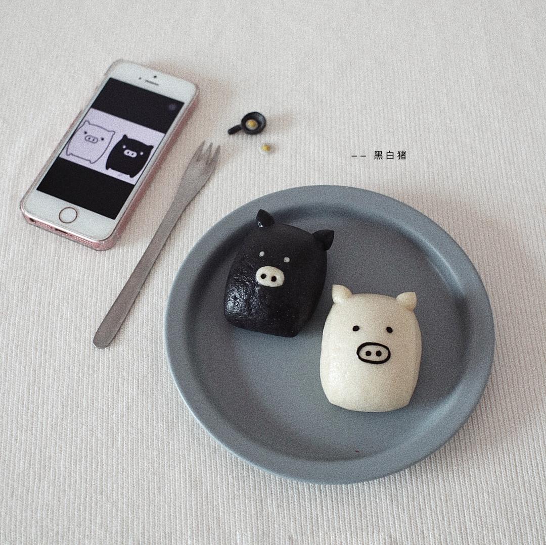 卡通黑白猪馒头(刀切馒头)