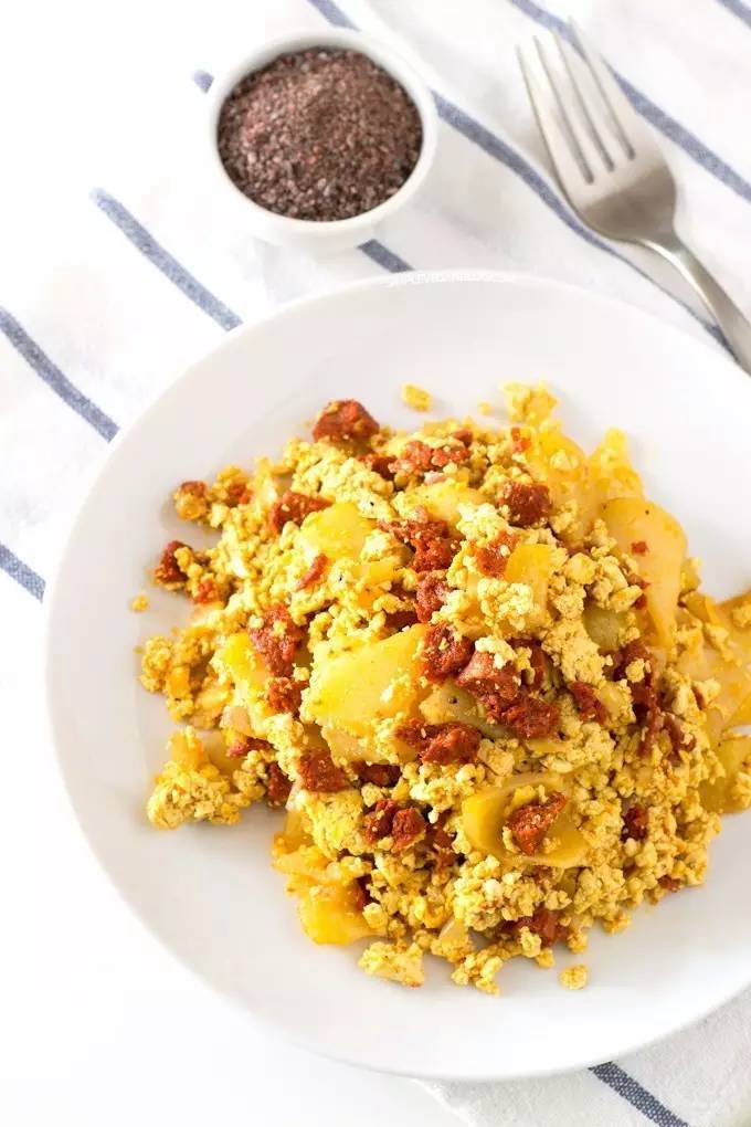 纯素:素腊肠土豆炒旦 Tofu Scramble With Potatoes and Chorizo